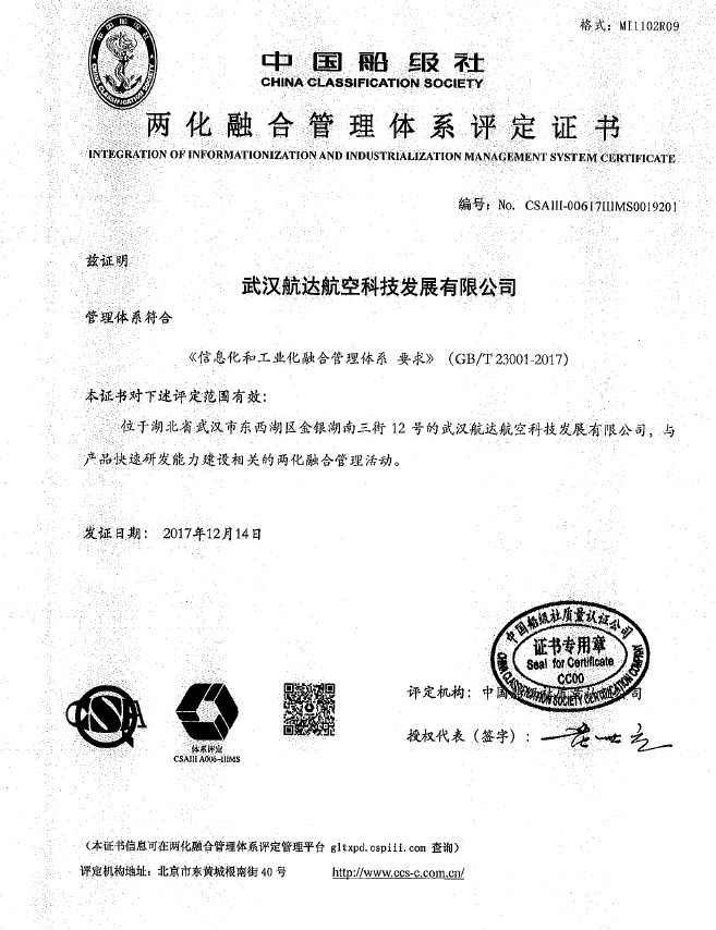 兩化融合證書